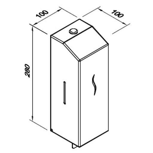 Rozmery dávkovača: Výška 280 mm, šírka 100 mm, hĺbka 100 mm