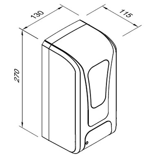 Rozmery dávkovača: výška 270 mm, šírka 130 mm, hĺbka 115 mm Rozmery kartónu 1 ks: Výška 275 mm, šírka 135 mm, hĺbka 120 mm