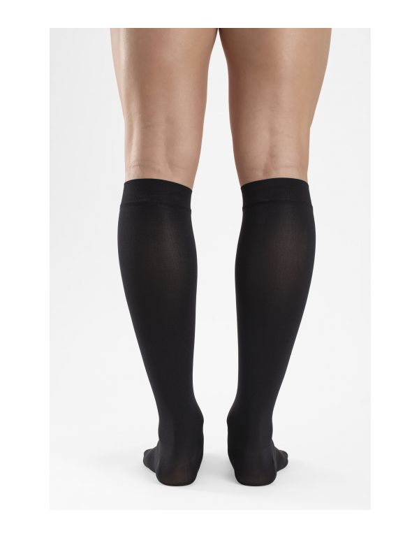 Zdravotnícke podkolienky s uzavretou špičkou a s kompresiou 15-21 mmHg. Odporúčajú sa na zmiernenie príznakov opuchu a ťažkosti nôh, na liečbu miernych kŕčových žíl a žilových porúch a na zabránenie embólie a trombózy. Tieto odstupňované kompresné podkolienky sú veľmi pohodlné, dlhotrvajúce a nepriehľadné, vďaka mäkkým mikrovláknam obsiahnutých v tkanine. Ich hypoalergénne silikónové vrchné pásy zabraňujú rolovaniu pančuch, majú zosilnené päty a prsty na nohách a neviditeľné ploché švy zaručujú maximálny komfort a odolnosť. Vysoká kvalita.100% vyrobené v Taliansku.