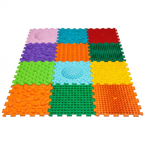 Masážna podložka sa skladá zo 12 puzzlí a je vyrobená z hygienického, hypoalergénneho materiálu na báze PVC.