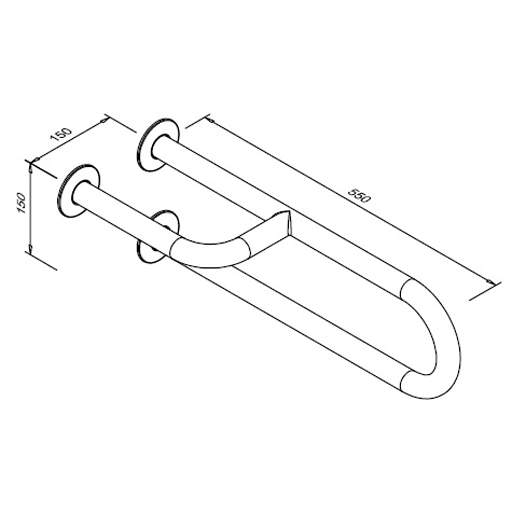 Pevné madlo pre osoby so zdravotným postihnutím, 3-podperné, ľavé, 550 mm, lesklá nehrdzavejúca oceľ