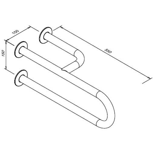 Pevné madlo pre osoby so zdravotným postihnutím, 3-podperné pravé, 550 mm, matná nehrdzavejúca oceľ