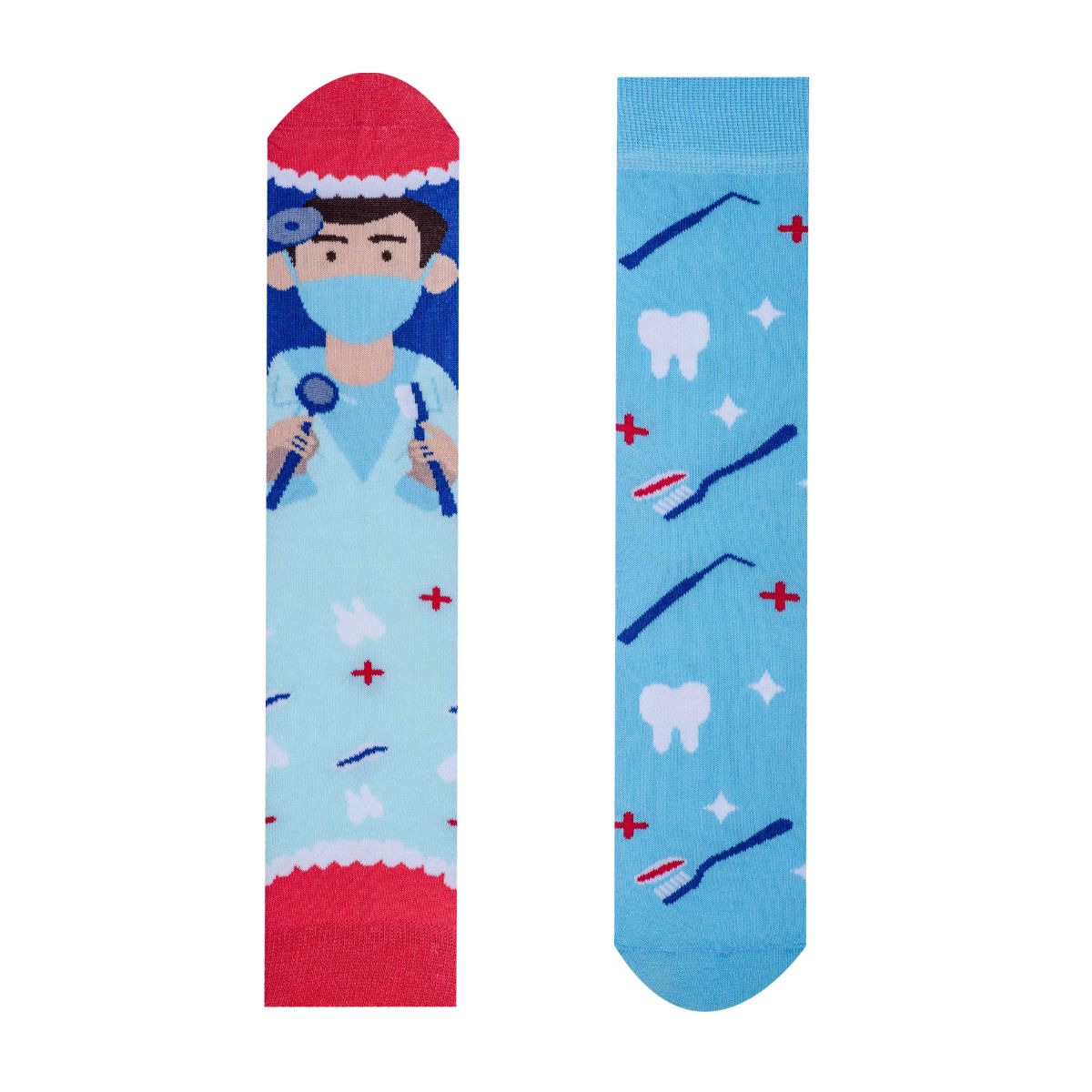 Veselé ponožky Zubár pre všetkých dentistov sú tu. Rozveseľ ordináciu a spríjemni vyšetrenie pacientom, či samotnému zubárovi. Nápaditý darček poteší študentov, sestričky, či samotných lekárov a rozptýli aj toho najväčšieho odporcu zubárskeho kresla. Rozdávaj úsmev a dobrú náladu s farebným vzorom a kvalitným materiálom.